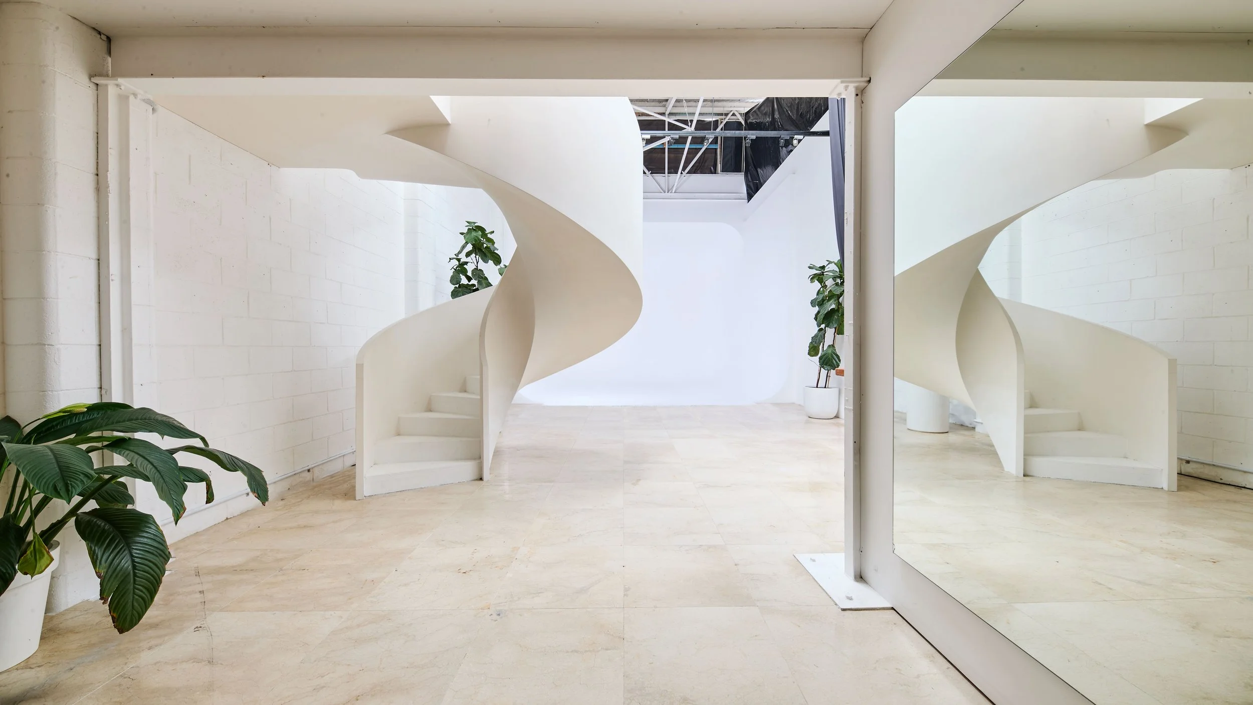Studio 1 is our flagship space — expansive, adaptable, and designed to meet the demands of high-end productions. At its centre is a distinctive 5.9m-wide white ‘egg’ cyclorama, offering true infinity from any angle — ideal for fashion, editorial, and commercial work. The studio comes pre-lit with premium RGB lighting, giving you full creative control over mood and tone from the outset.Additional features include 3-phase power, easy driveway access for unloading, all-day parking, blackout curtains for full light control, polished marble floors, and a private bathroom. A dedicated hair, makeup, and styling room supports seamless workflow, and an elevated mezzanine — accessed via a spiral staircase — provides additional flexibility on set.